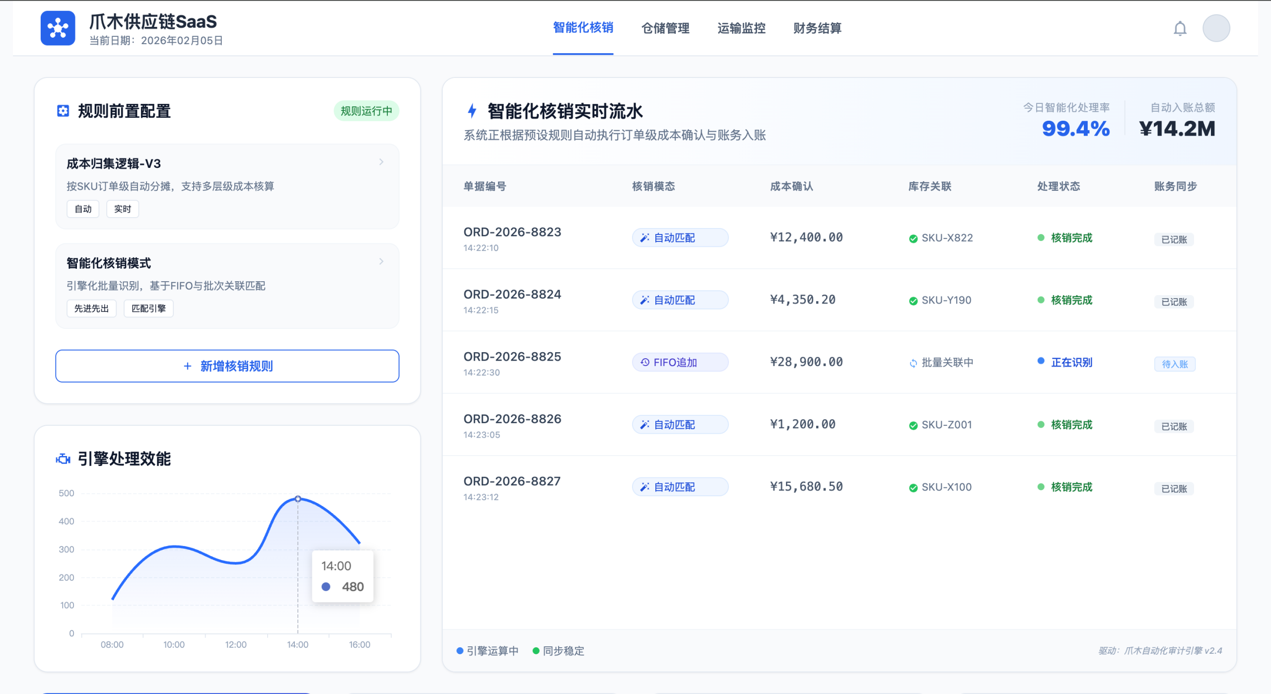 支撑海量订单下的自动核销、收入与成本确认